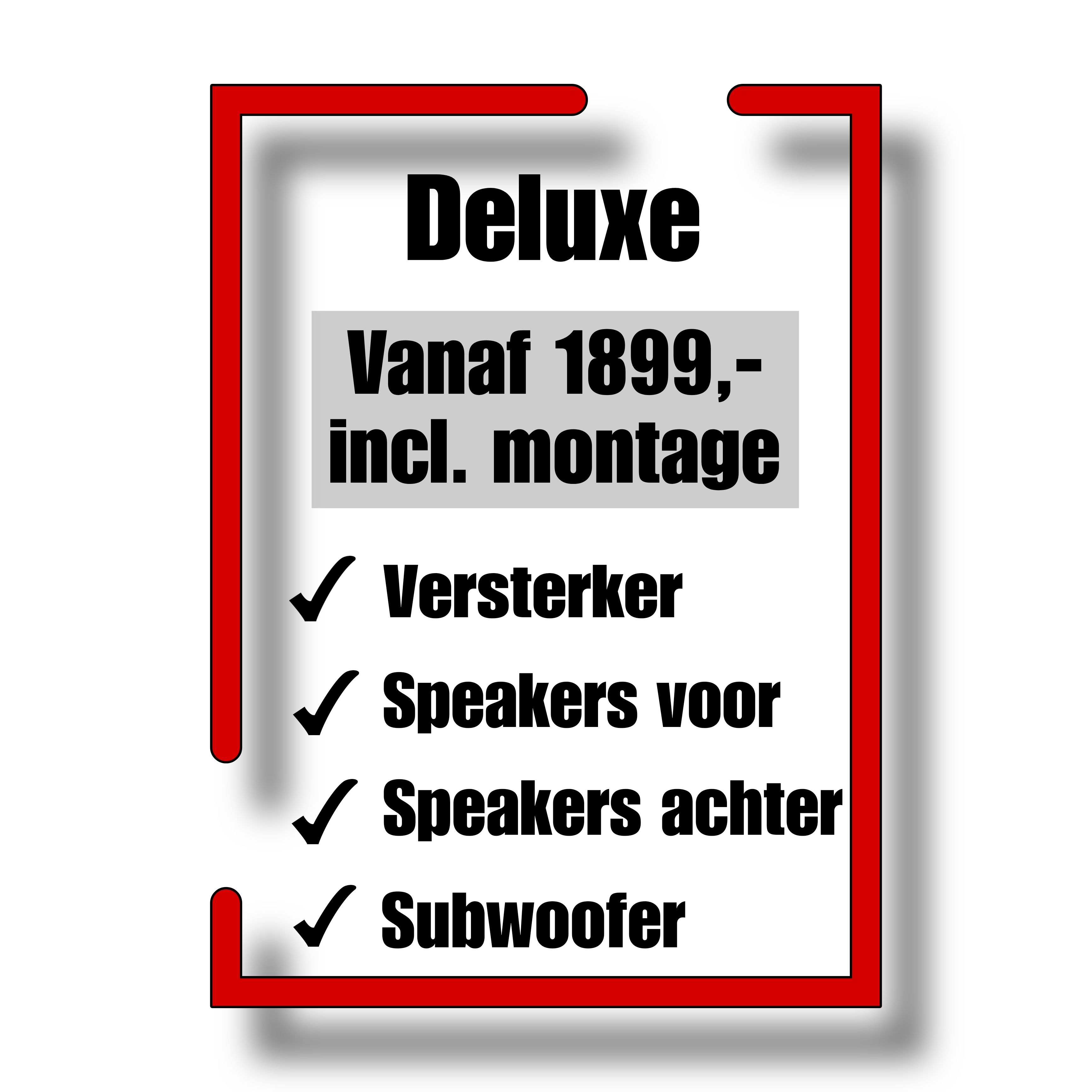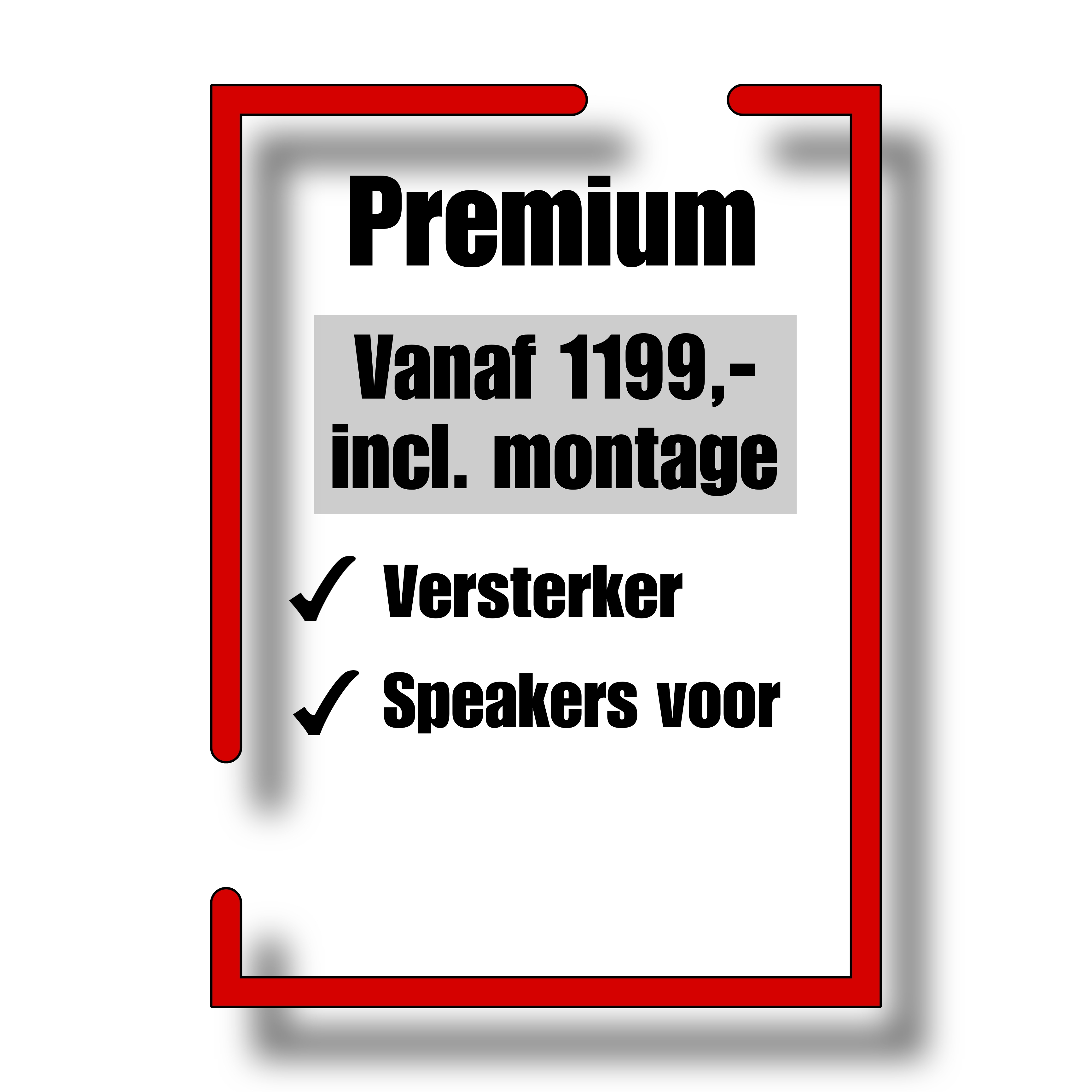 - Premium audio upgrade: Incl. speaker upgrade voorzijde samen met versterker (vanaf €1199 incl. montage)